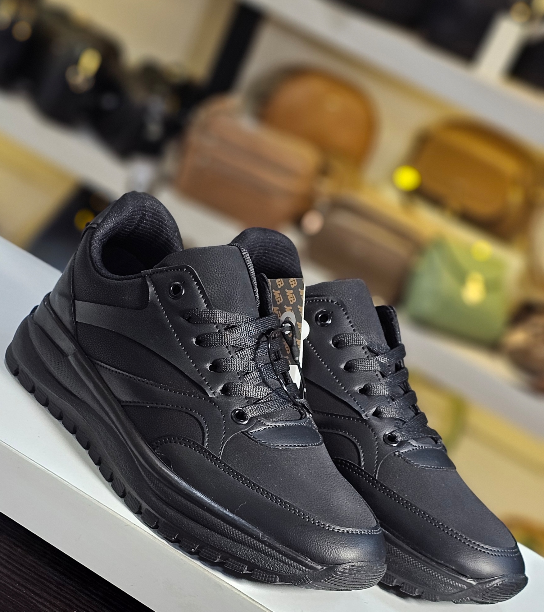 کتونی دخترانه مشکی: کتونی دخترانه مشکی از جنس پارچه و چرم تولید شده است این کار داری زیره پیو هستش و کاری راحت و سبک است مناسبت استفاده روزمره