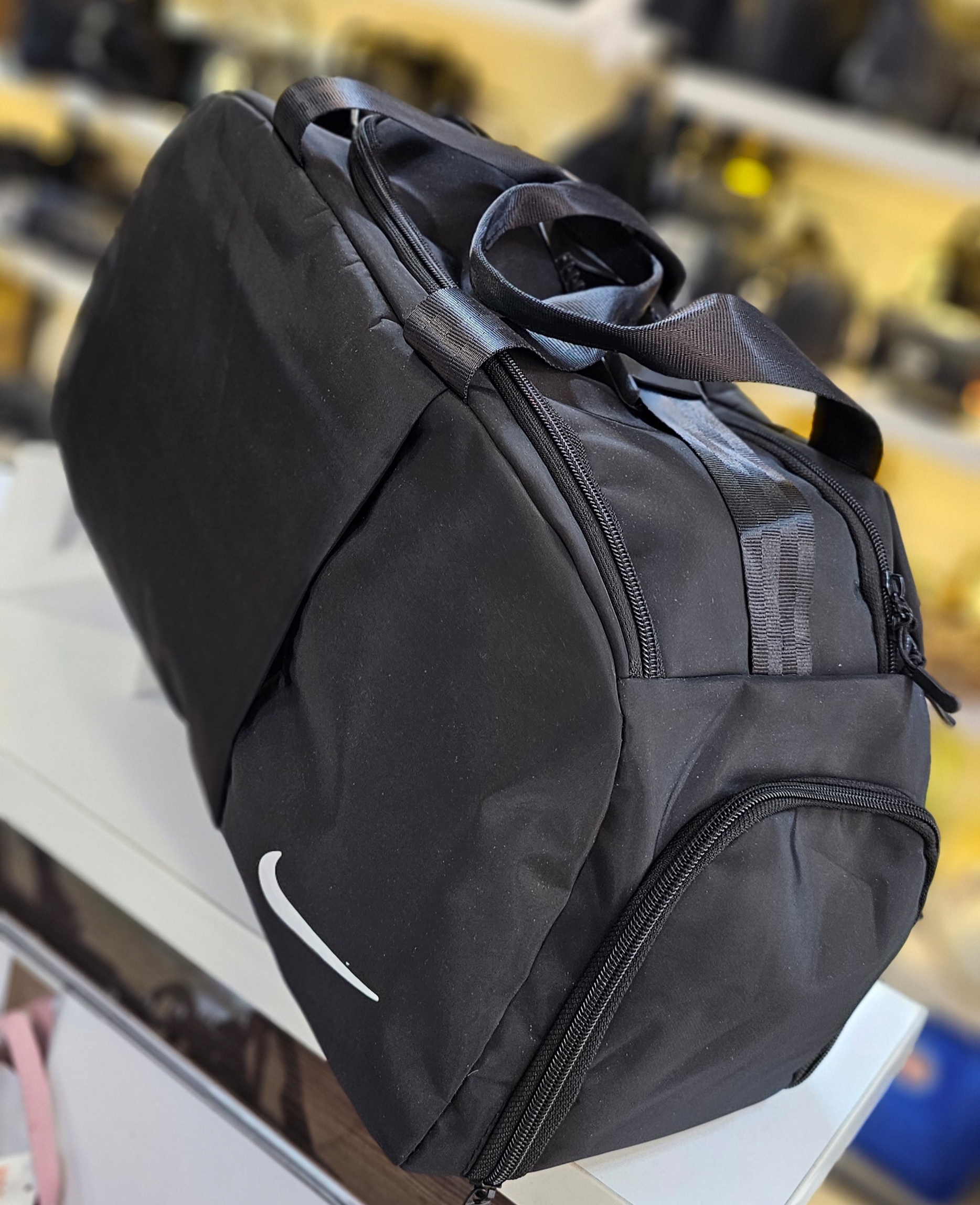 این یک کیف ورزشی یا دافل بگ به رنگ مشکی است.