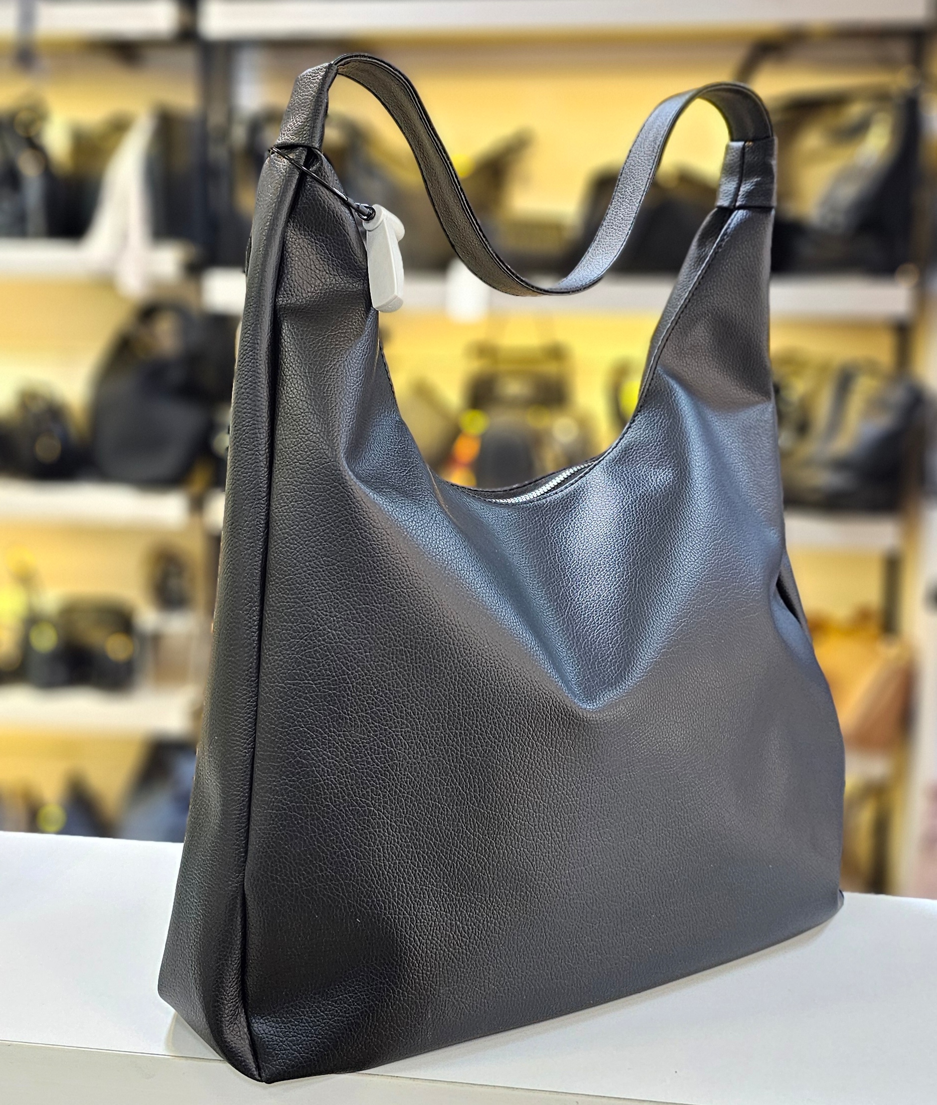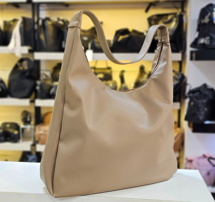 . این یک کیف شانهای (هوبو بگ) که از جنس چرم مصنوعی، ساخته شده ، دارای یک بند شانهای پهن و راحت است و در قسمت بالا با زیپ بسته می شود.