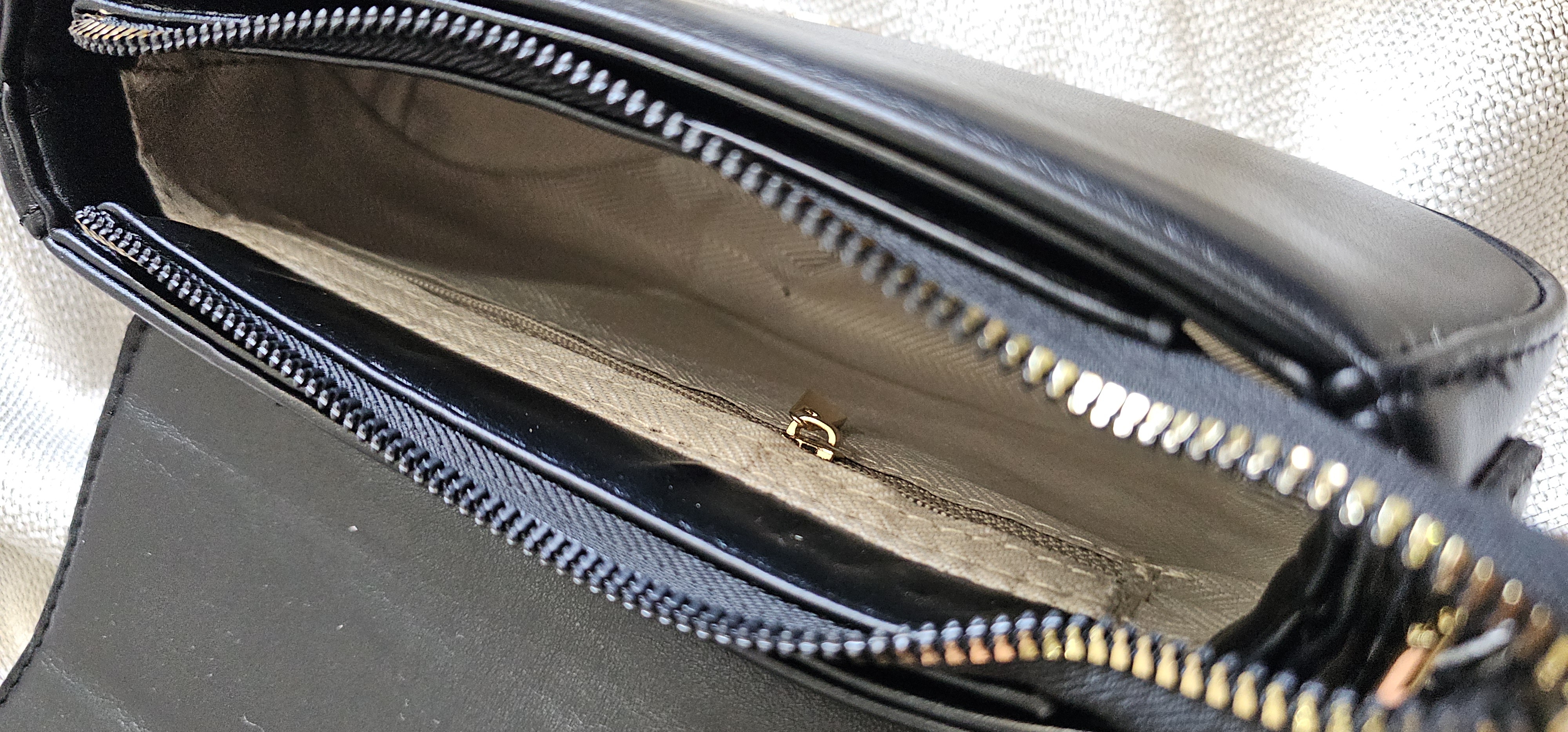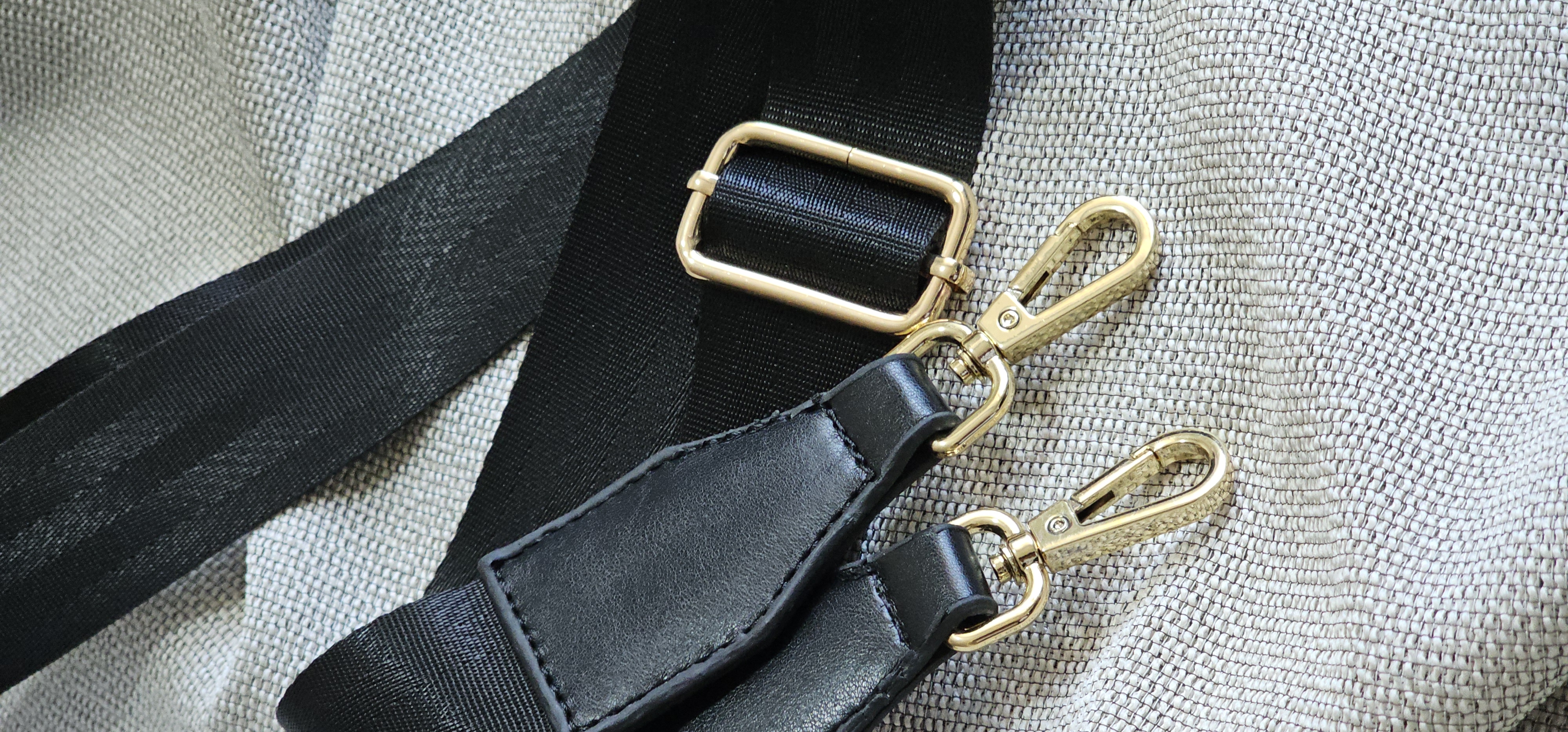 - جزئیات شیک: استفاده از یراقآلات فلزی محکم به رنگ طلایی (مانند گیرهها و سگک تنظیم بند)، کنتراست زیبایی با بدنه مشکی ایجاد کرده و درخشندگی ظریفی به کیف میافزاید.