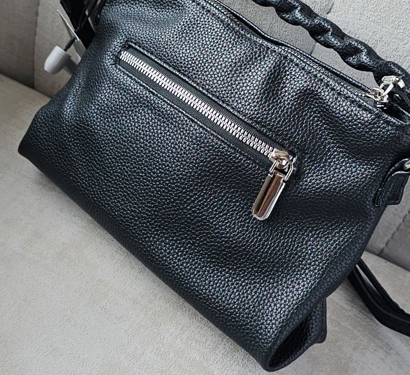 جنس کیف از چرم مصنوعی بافتدار باکیفیت بوده و دارای بند دستی بافتی مقاوم بههمراه بند بلند قابل تنظیم برای استفاده بهصورت دوشی یا کراسبادی میباشد.